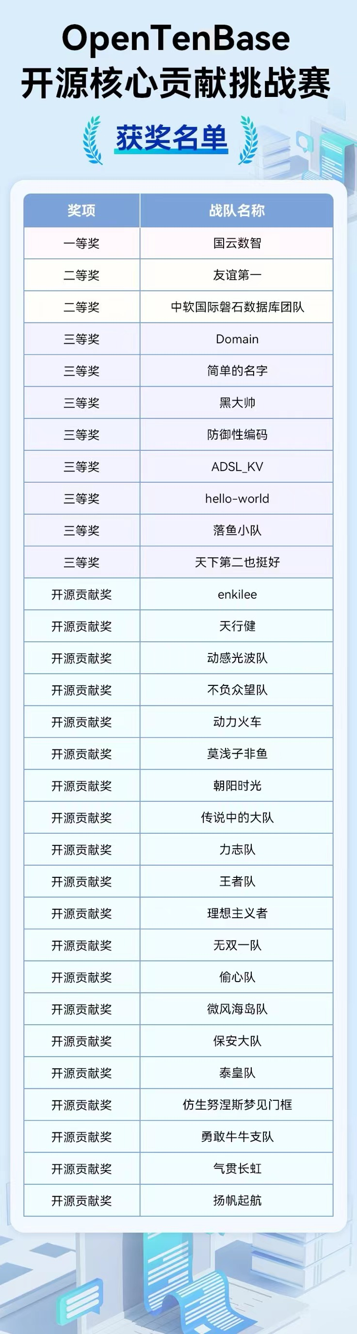通过OpenTenBase开源核心贡献挑战赛这个平台,参赛团队不仅提升了自身的技术实力,也结识了志同道合的伙伴。相信随着越来越多的开源贡献者和用户的加入,OpenTenBase数据库的生态会越来越繁荣!