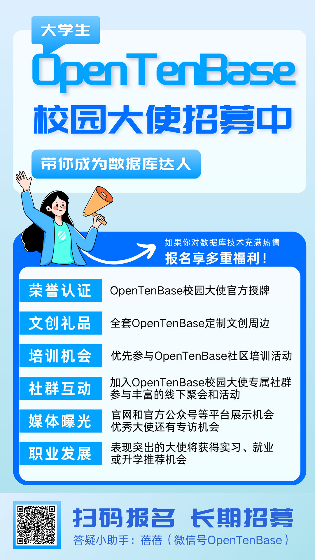 欢迎加入我们,开启你的校园大使之旅,与OpenTenBase共同成长!