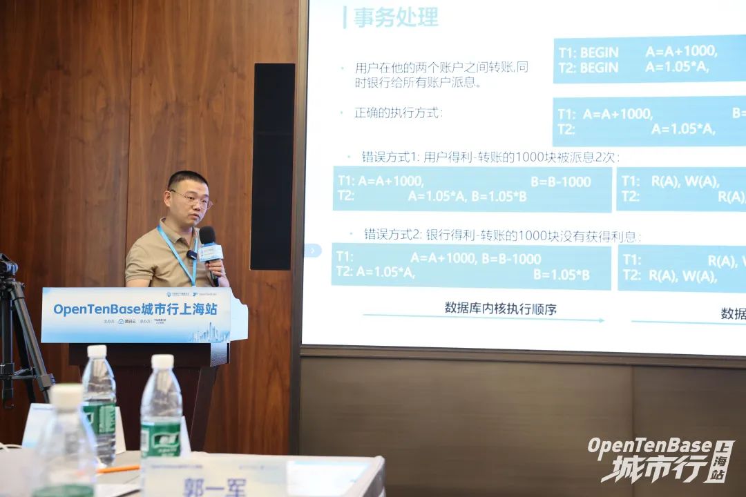 云贝教育创始人、OpenTenBase社区培训委员会副主席郭一军分享了《OpenTenBase分布式事务处理机制》。他从数据库事务的定义,分布式事务产生场景,分布式事务提交流程和两阶段提交的异常处理流程四个方面进行了深入讲解。