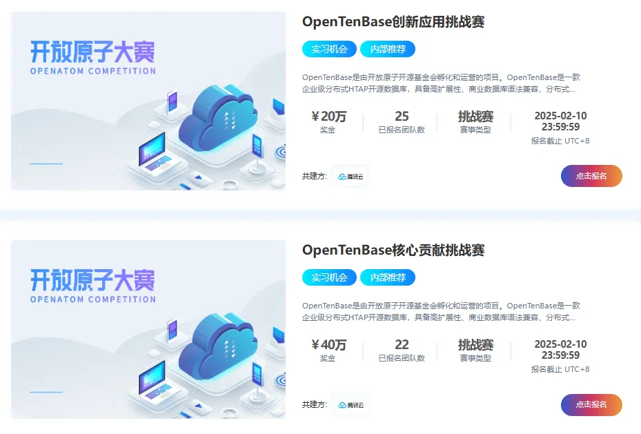 参与两届开放原子大赛,第一届大赛,OpenTenBase开源核心贡献挑战赛吸引了来自各大高校、科研机构和企业的多达544支队伍的积极参与,11支队伍闯入决赛。